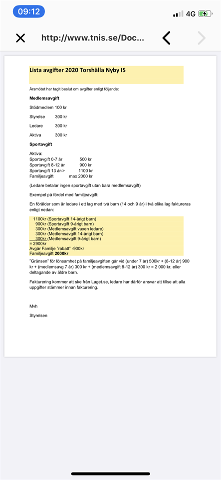 Följer ni nedanstående steginstruktion finner ni avgifterna för säsongen 2020. 1. Gå in på tnis.se 2. Välj fliken "MER" längst till höger i den liggande menyraden. 3. Välj "Dokument". 4. Välj "Klubbens medlemsdokument" 5. Välj "Avgifter för TNIS år 2020" Observera möjligheten till maximerad familjeavgift på 2000kr. Vid eventuella frågor eller intresse gällande familjeavgift ställs dessa till mejladressen: kansli@tnis.se /Styrelsen