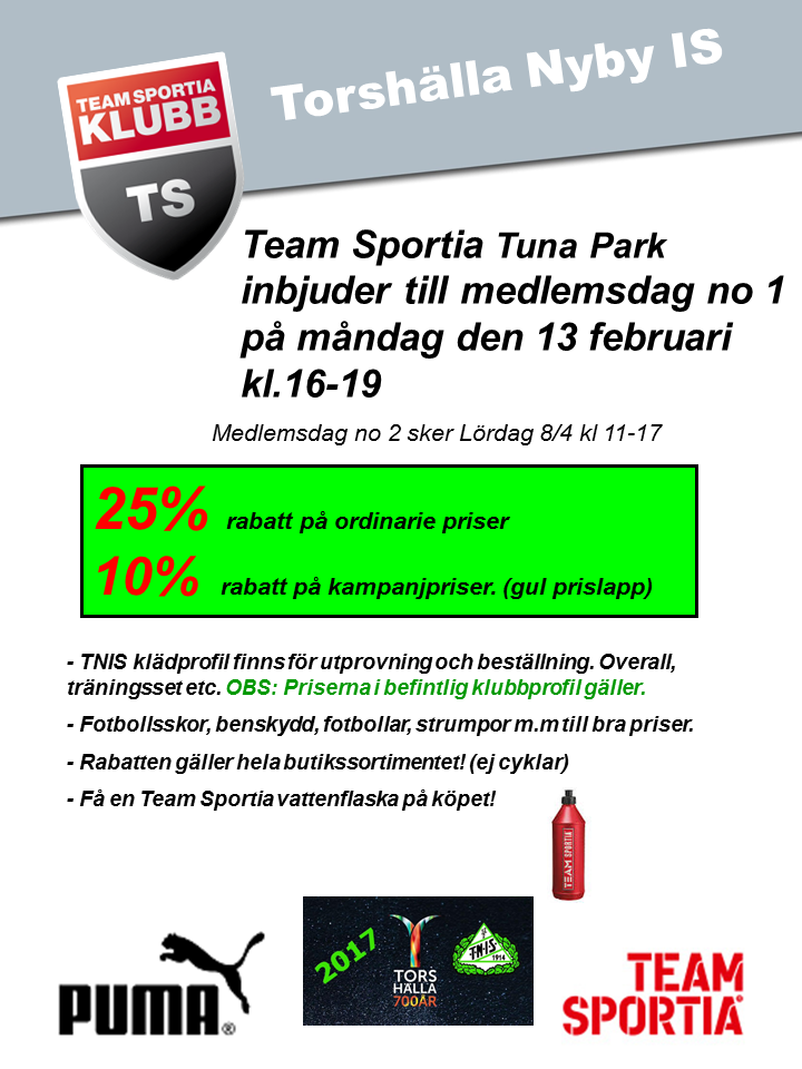 Hej! Lördagen den 27 maj är det festligheter på gång i TNIS och på Torsharg! Detta har att göra med att Torshälla Stad fyller 700 år och i årets olika firanden så är det då dags att fira och visa upp alla fina föreningar som finns på orten. Dessa har blivit inbjudna att deltaga på något sätt men det är TNIS som har fått nöjet att arrangera det hela. Mellan kl. 10-15 så ska det spelas så mycket ungdomsfotboll som möjligt på alla planer och inbjudna Torshällaföreningar ska visa upp sina verksamheter. Det ska finnas kiosk, grill, lotterier, lekplatser osv för att göra detta till en stor familjefest! Dagen avslutas med att det legendariska TV-laget kommer och spelar match kl. 16,00 och på kvällen blir det bankett i Torshargshallen (biljetter kommer att börja säljas snart)! Sprid detta till vänner och bekanta och boka redan nu in detta datum i er kalender! Hälsningar TNIS